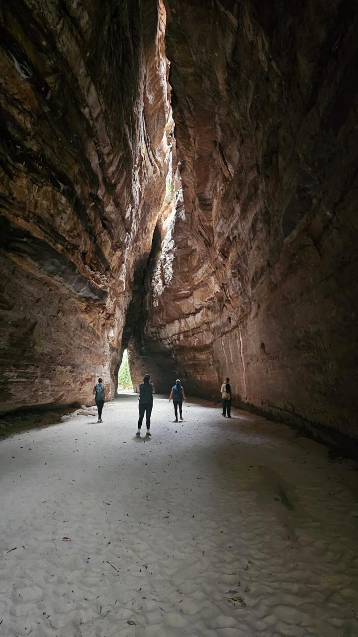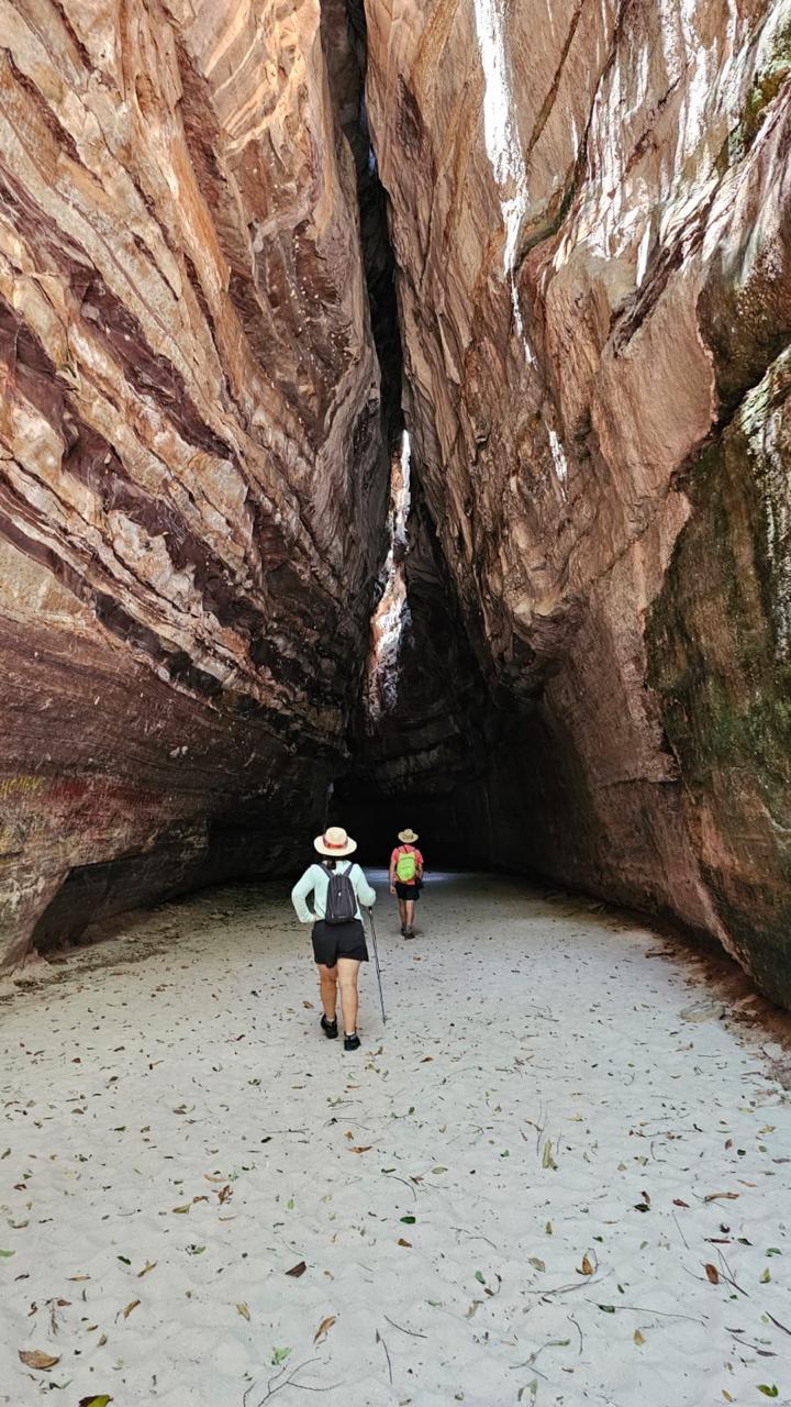 If Capivara is about archaeology, the Serra das Confusões is about pure, raw geology. Its name—the “Mountains of Confusion”—derives from the way the shifting sun plays tricks on the colours of the rocks. The Janela do Sertão (Window of the Sertão) provides a sublime natural frame for the vastness of the plains. However, the pièce de résistance is the Gruta do Riacho dos Bois, a gargantuan sandstone fissure stretching 1.5km. Walking on its fine white sands, flanked by 20-metre walls, feels like stepping into a cinematic dreamscape.